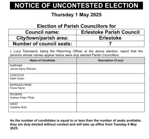 Hello everyone! Erlestoke parish council hope to see you at the annual parish meeting on the 12th May 2025, doors open at the church at 6.30pm for drinks and chat, […]